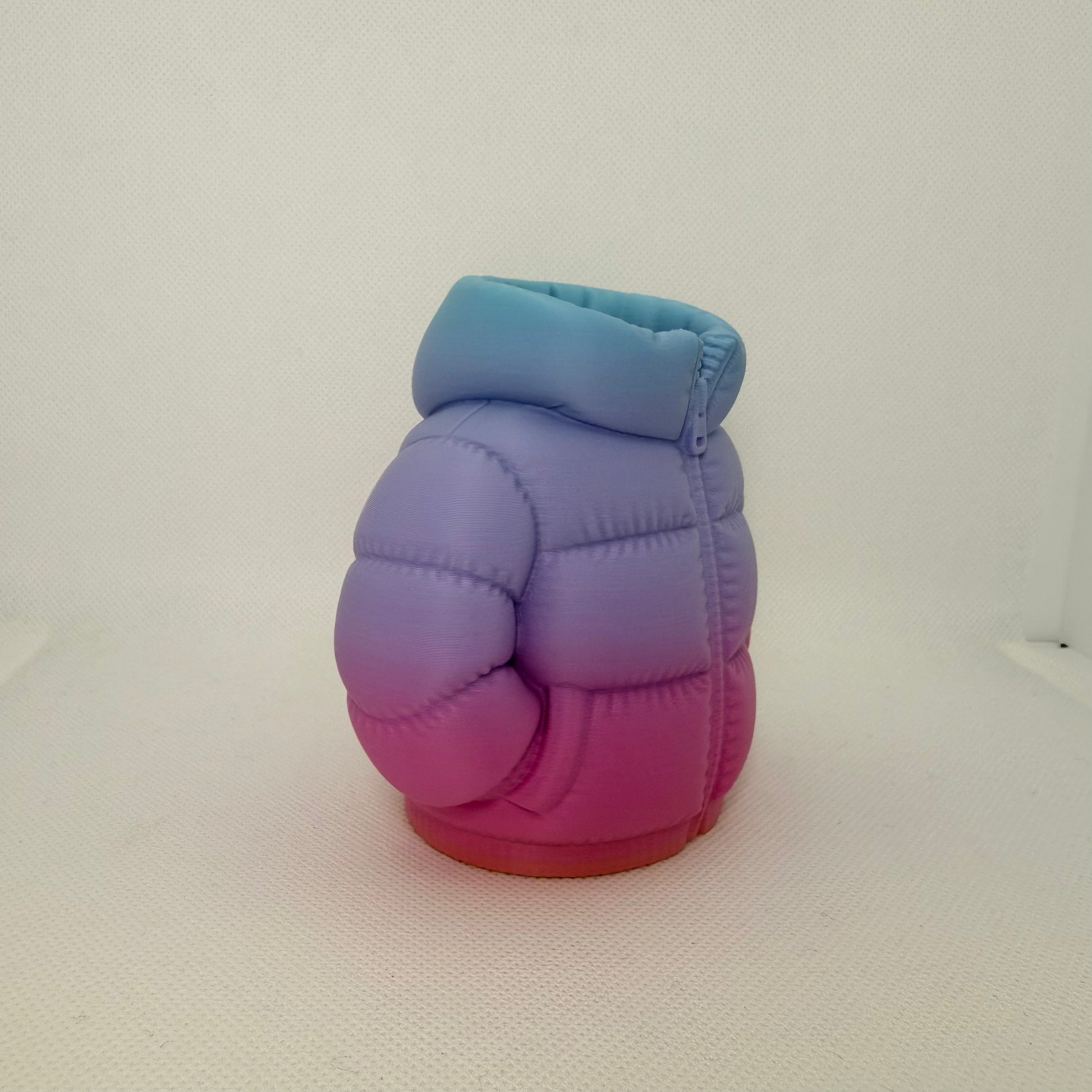 Bring a touch of playful design to your workspace with this 3D Printed Puffer Jacket Pen Holder. Inspired by the iconic look of a down jacket, this unique desk accessory combines creativity, functionality, and modern 3D printing craftsmanship.